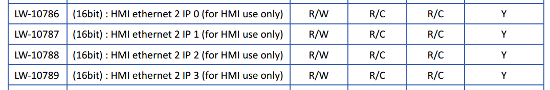 Можно ли конфигурировать IP адрес панели через внутренние регистры? В мануале указаны LW-10786-89, но при изменении и перезагрузки панели IP адрес не меняется